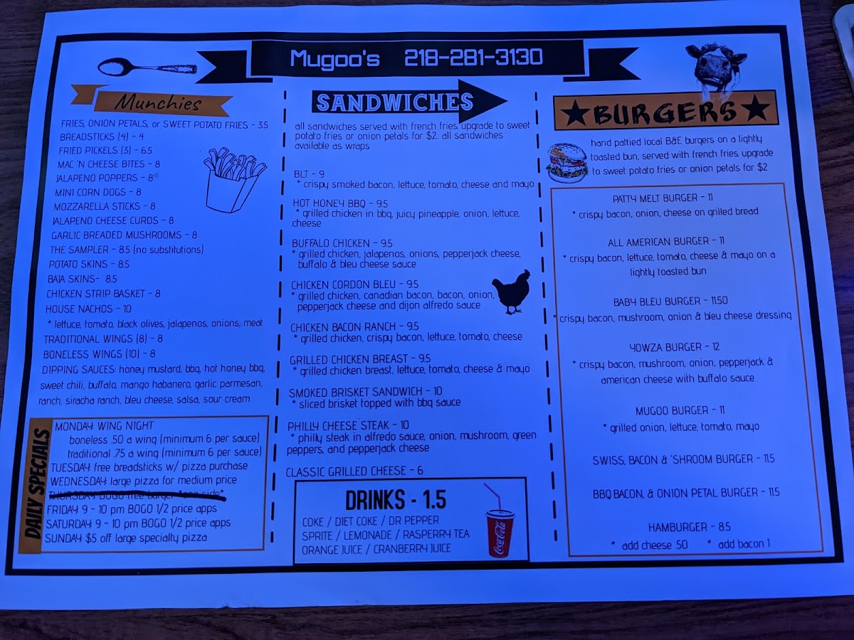 Looking for a place that serves up delicious, made-to-order pizza? Look no further than Mugoo's Pizza Menu. Located at 1500 University Ave in Crookston, MN, this spot is a local favorite for pizza lovers. Whether you're in the mood for a classic cheese pizza or craving something a little more adventurous, you'll find plenty of options to satisfy your hunger. From hearty meat lover’s creations to fresh veggie-loaded pies, every pizza is crafted with care and baked to perfection.